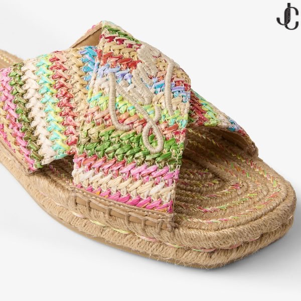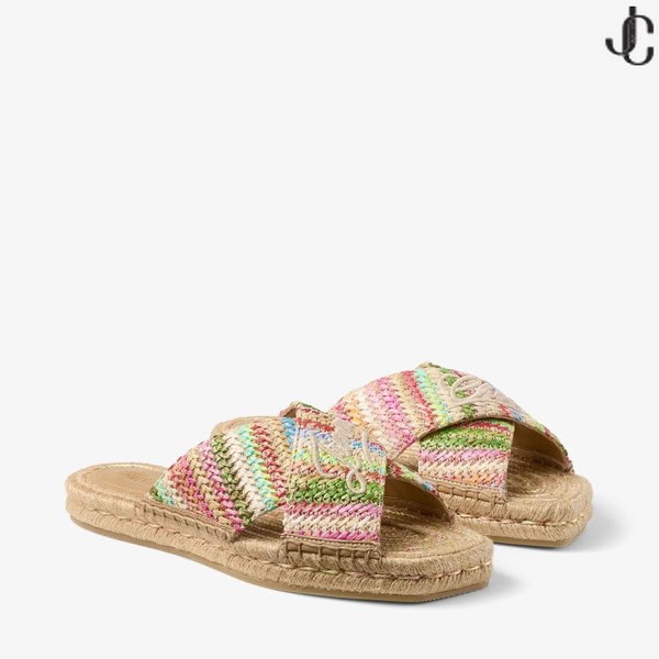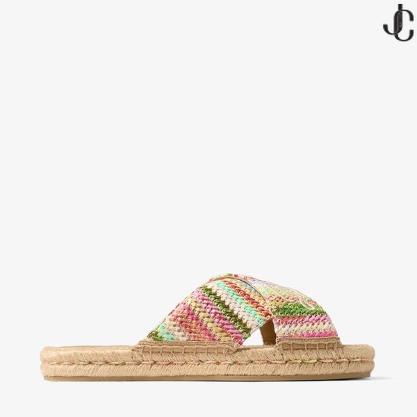 Aciel صندل مسطح Ecru مخطط الرافيا الصنادل