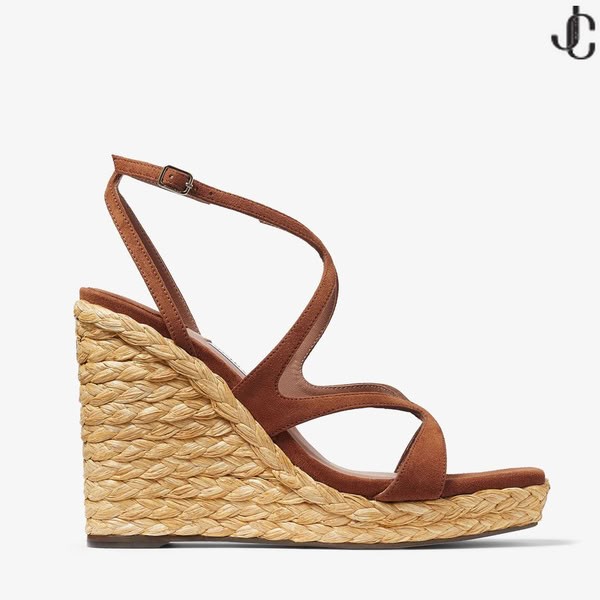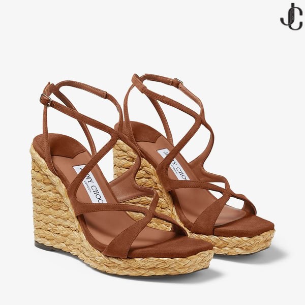 تحديث خزانة الملابس الكلاسيكية ، آيلا صندل مصنوع من جلد الغزال مع الرافيا إسفين كعب. المنحني أنيقة الأشرطة جعل هذا الاغراء صورة ظلية أن يكمله الحديث اصبع القدم مربع.