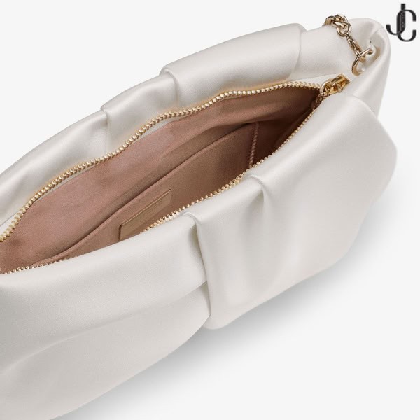 بوني القابض في luxe الساتان تتميز لينة تصميم مطوي أن يجعل جهد براقة. يضم انفصال حزام الكتف سلسلة هذا القابض يمكن أن يتم باليد أو تلبس على الكتف للتصميم تنوعا في مساء خزانة.