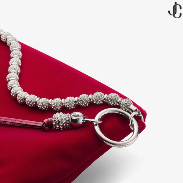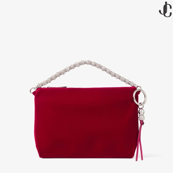 The Callie clutch bag is crafted from velvet. The body of the bag is designed using a stitch and turned construction giving it a softly draped silhouette. The bag can be worn on the shoulder using the pave crystal strap.