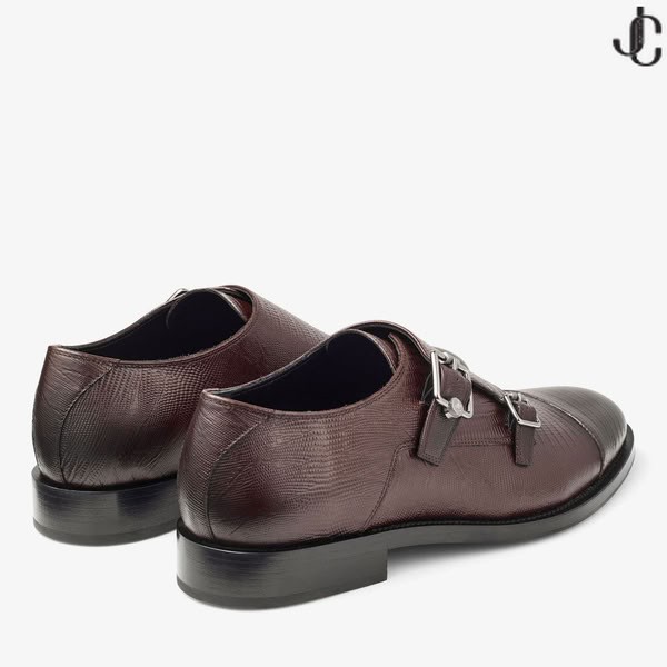 Finnion Monkstrap القهوة سحلية المطبوعة الأحذية الجلدية