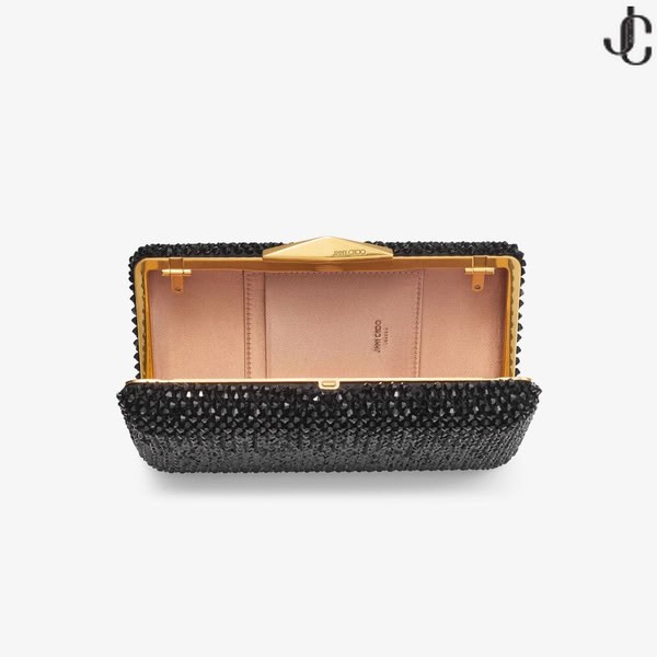 - كليمي الساتان الأسود كريستال مطرز حقيبة مخلب