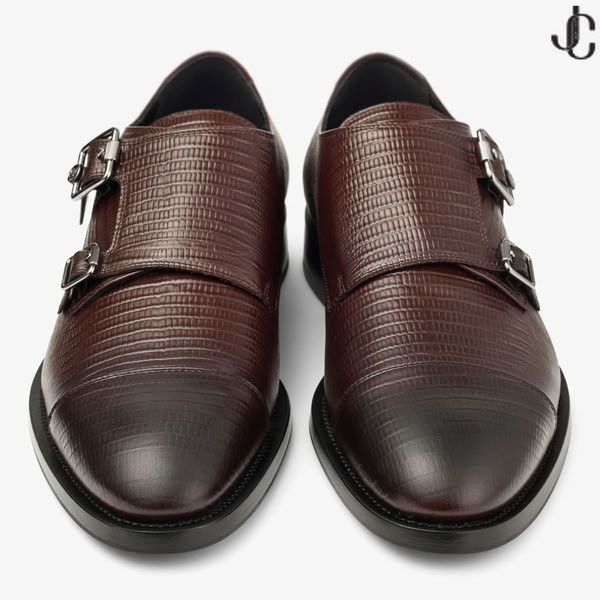 Finnion Monkstrap Coffee Lizard Printed Leather Shoes