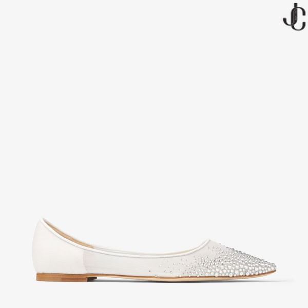 Láska Plochou Flache Schuhe aus kristallverziertem Netzstoff v Weiß für die Bude