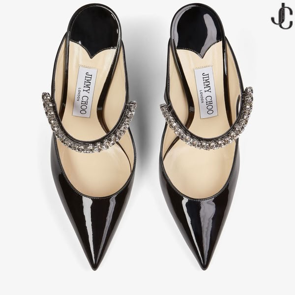 Bing 100 Sort Patent Læder Muldyr med Krystal Rem