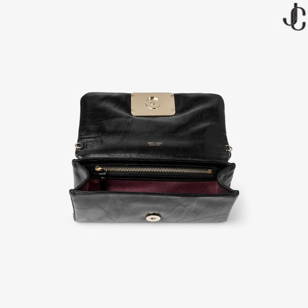 Lavet på puffet vintage metallisk læder, Edie tegnebog bringer erklæring stil til et alsidigt design med Jimmy Choo monogram ramme og aftagelig kæde skulderrem.