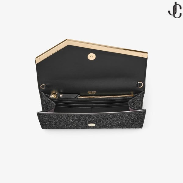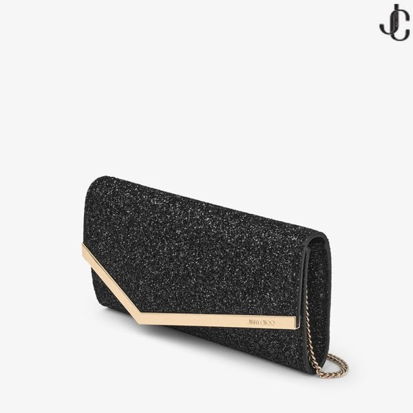 Den Emmie clutch taske i glimmer stof har et rent og moderne byggeri. Denne strømlinede aften kobling, har Jimmy Choo indgraveret magnetisk snap knaplukning på fronten. Den aftagelig kæde tilføjer alsidighed, så bære jeres fulde længde eller bæres i hånden.