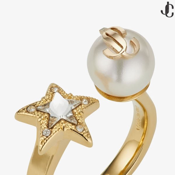 Elegant og tidløs, JC-Stjernede Perle ring er et sandt eksempel på Jimmy Choo glamour. Italiensk-udført i guld-færdig metal, ringen er sluttet til en perle og en Swarovski krystal-dekorerede stjerne. Pearl er med accenter med JC initialer for en øjeblikkeligt genkendelig touch.
