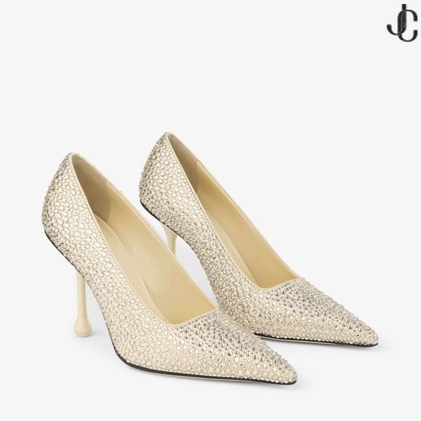 Ixia 95 Gul Kærnemælk Satin med Rhinestones Pumper OS