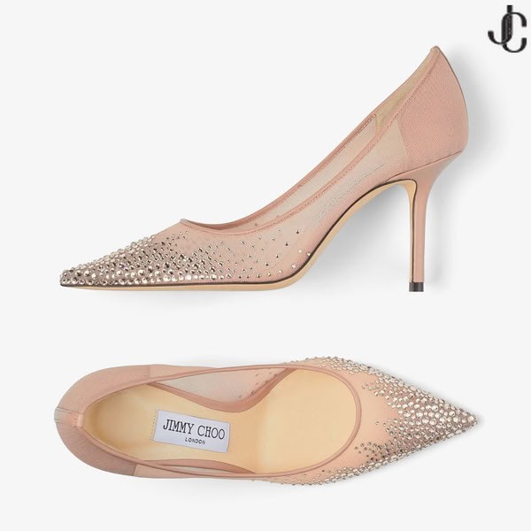 KÆRLIGHED 85 Ballet Pink Mesh Spidse-Toe Pumper med Dégradé Krystaller Sommer Kollektion