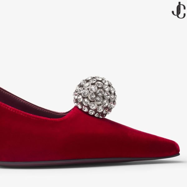 , der er Designet med en erklæring, krystal-dekorerede orb, dette skulpturelle hæl drop pumpen er lavet af fløjl og designet med en kvadratisk-cut vamp.