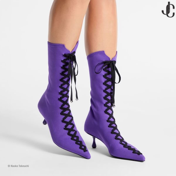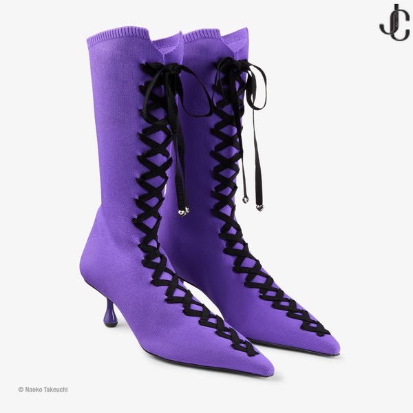Sailor Saturn feminine kraft er indeholdt i denne skulpturelle hæl drop boot. Udformet fra en stretch, strik stof med hjerte-pyntet snørebånd - et motiv, der er fundet i hele serien, der repræsenterer enhed af Sømand Vogtere. Denne slående, pegede boot udstråler magt og er inspireret af silhuet båret af Sailor Saturn.