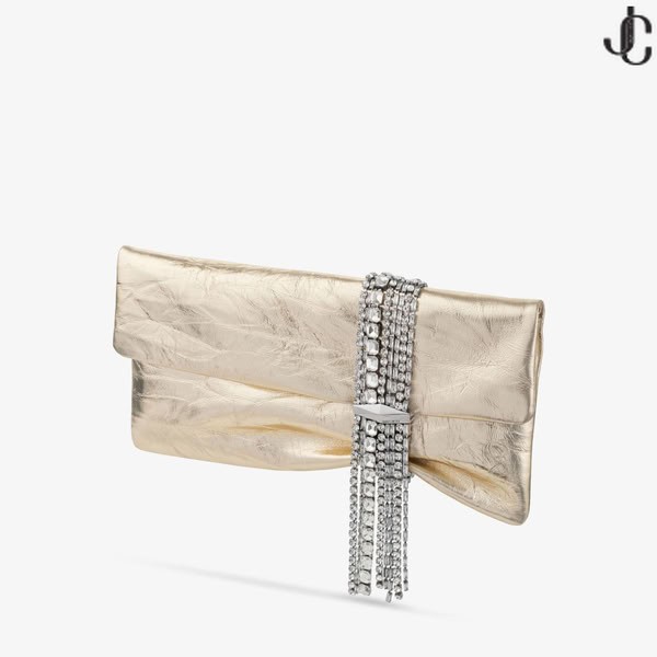 Lavet af vintage metallisk læder, Zandra clutch taske er pakket med en krystal lysekrone armbånd, der skaber en unik, blød silhuet. Det er en erklæring, stil, suppleret med vores underskrift Diamant hardware.