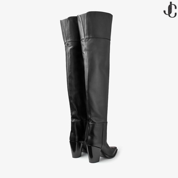 Cece Über Dem Knie-80 Schwarz Kalb Leder Boot
