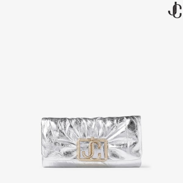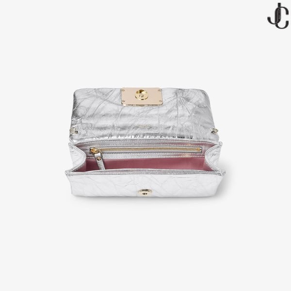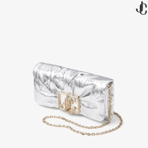 Crafted in puffed vintage metallic-Leder, die Edie Brieftasche bringt statement-Stil zu einem vielseitigen design mit einer Jimmy-Choo-Monogramm-Rahmen und abnehmbare Kette Schulterriemen.