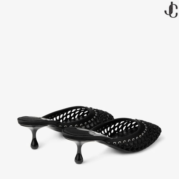- Pixie Mule Woven-50 Black Woven Satin Mule