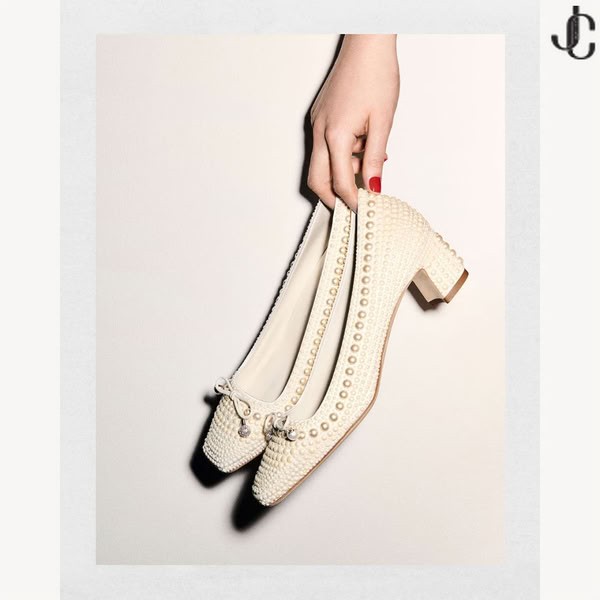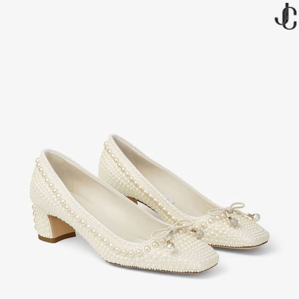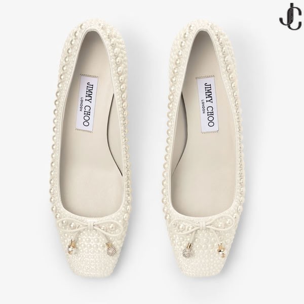 Της Elme είναι μια κλασική μπαλαρίνα σιλουέτα αυξημένα από ένα ultra-wearable χαμηλό τακούνι. Δημιουργημένο από μαργαριτάρι στολισμένη σατέν, συμπληρώνονται με ένα μαργαριτάρι και κρύσταλλο-κοσμείται τόξο.