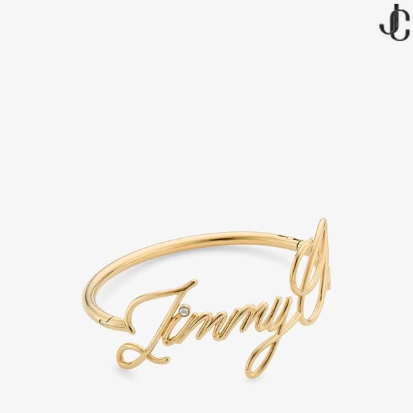 που Ορίζεται από την υπογραφή Jimmy Choo σενάριο, αυτό το λεπτό βραχιόλι είναι κατασκευασμένο από χρυσό ορείχαλκο τελειώσει και συμπληρώνεται με διακοσμητικό κρύσταλλο κουκίδες εγώ Jimmy Choo.