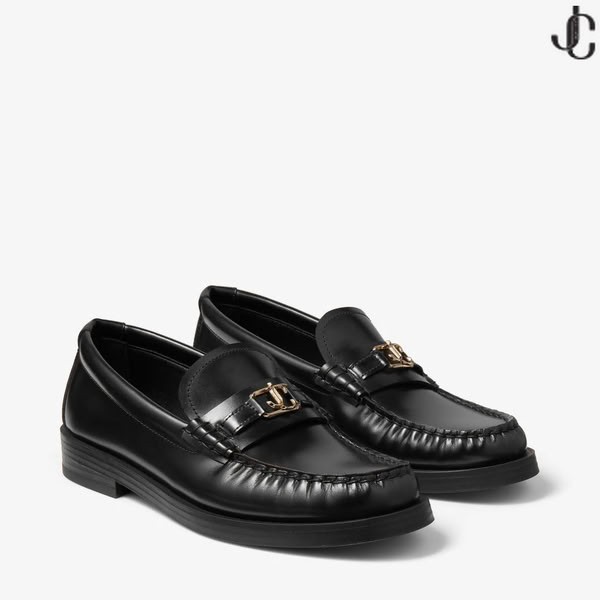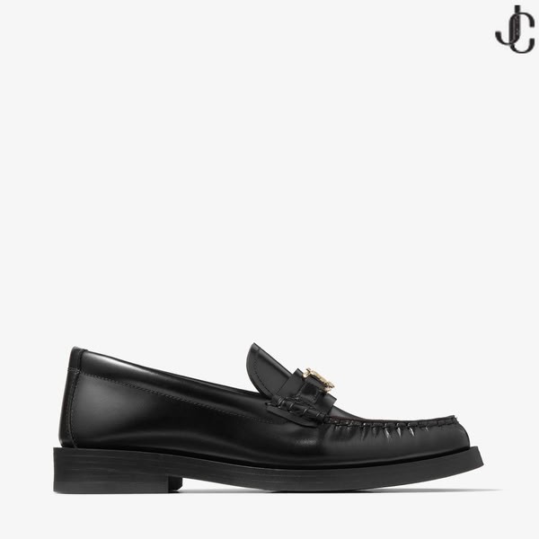 - Addie/JC Black Box Calf Leather Flat Loafers with JC Emblem