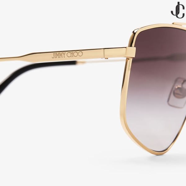 The Alyssa sunglasses are a modern update to a classic avaiator silhouette. They feature brown gradient shaded lenses and are complimented by our signature Jimmy Choo logo.