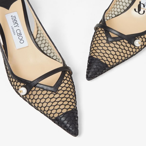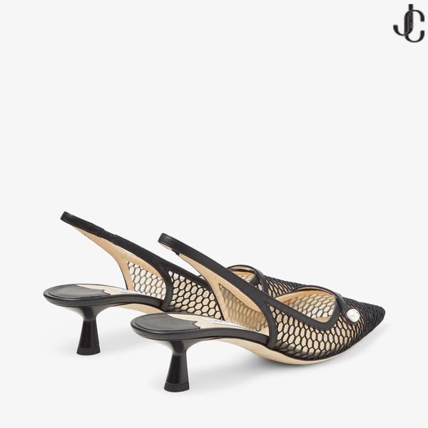 Black Fishnet Mesh and Nappa Slingback Pumps AMITA 45 Summer 2022 collection