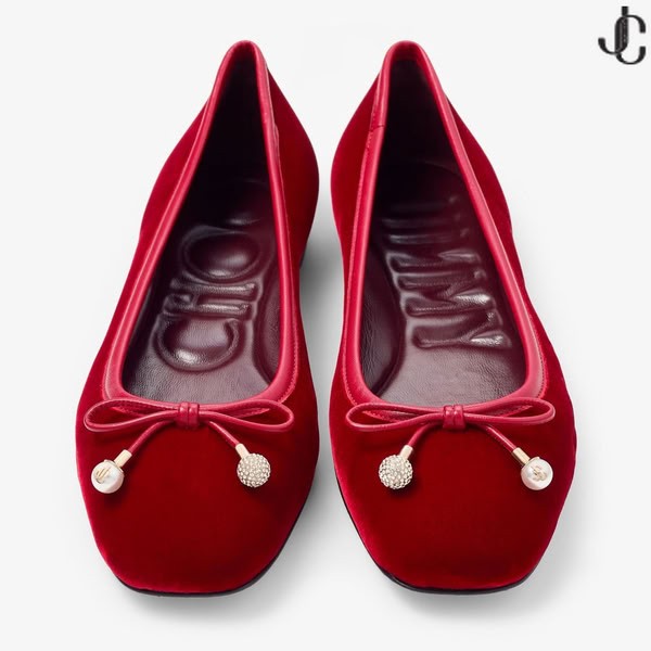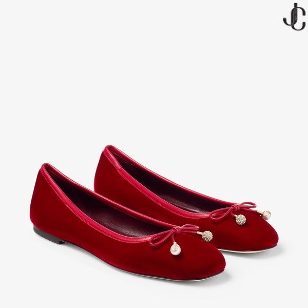 The Elme is a classic style crafted from rich velvet. This timeless ballerina shoe is effortlessly elegant, complemented by a pearl and crystal-adorned bow and our signature Jimmy Choo emblem.