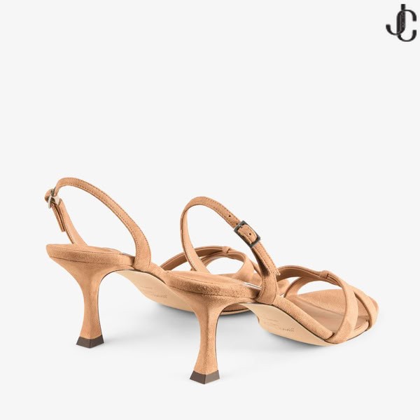 This quintessential strappy sandal is a masterclass in modern minimalism. Crafted in soft suede, its elegant crossover front and slingback strap create a graceful silhouette, finished with a sculptural heel.