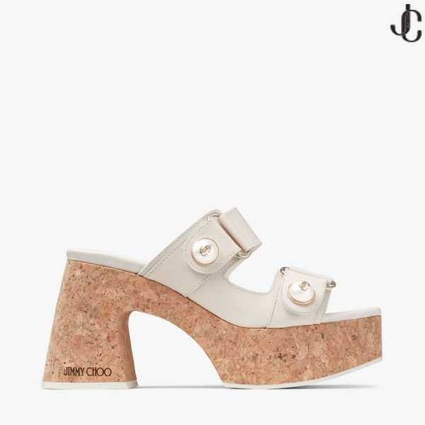 Crafted from smooth leather, the Fayence wedge is an elevated update to a wardrobe essential with a platform cork heel. The design is complemented by pearl-adorned straps featuring our signature hardware.