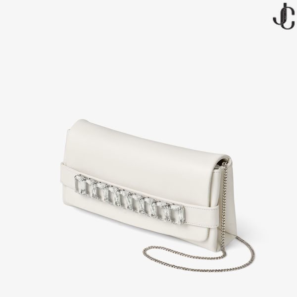 An elevated take on evening minimalism, the Kya clutch is defined by its sculptural softness and subtle shine. The supple nappa leather offers a smooth, refined feel, while the square crystal bracelet adds a delicate flash of light. Designed to be styled in- hand or tucked under the arm – it’s the piece you’ll reach for when the moment calls for ease, elegance and just the right amount of glamour.
