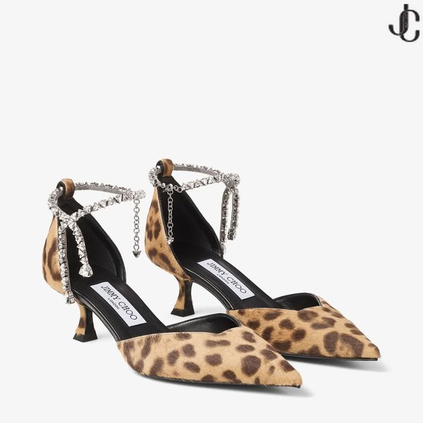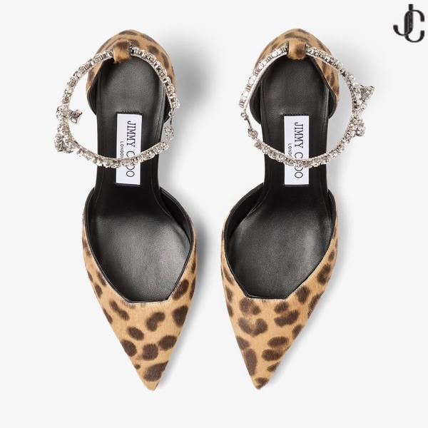 The Stevie pump makes a statement with a leopard print pony upper complemented by a crystal anklet. This pointed silhouette is designed with a flattering V-cut vamp and a sculpted heel.