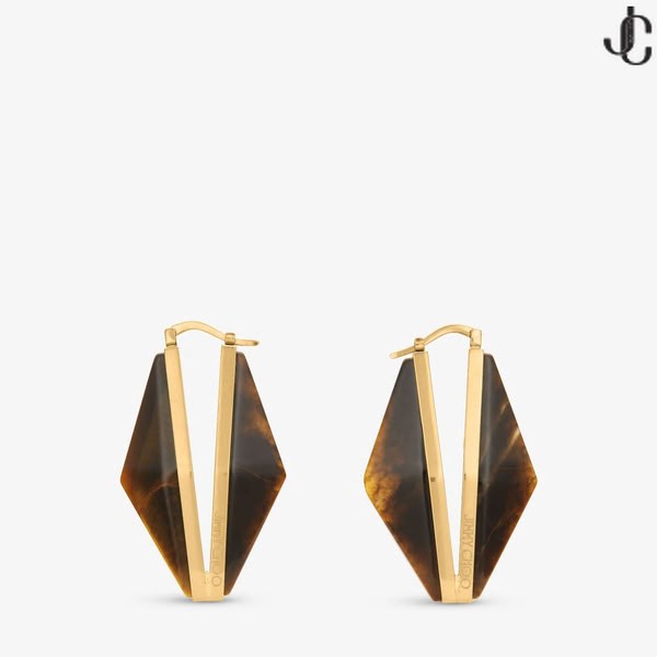 Del Diamante enlace arete es elegante en su simplicidad, elaborado a partir de acabado en oro de metal y complementada por un ojo de tigre de piedra de cuarzo. Este estilo está diseñado con un broche ajustable de fijación.