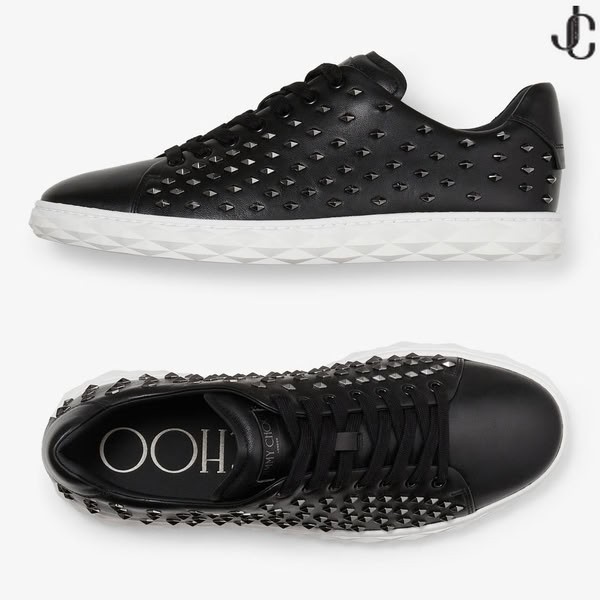 DIAMANTE de la LUZ/M Nappa Negro Bajo-Top de los Entrenadores con Postes de madera de la Colección de Otoño