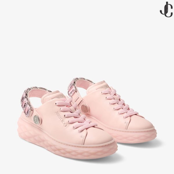 Diamante Maxi/De Cristal De Color Rosa De Cuero De Napa De Zapatilla De Formadores