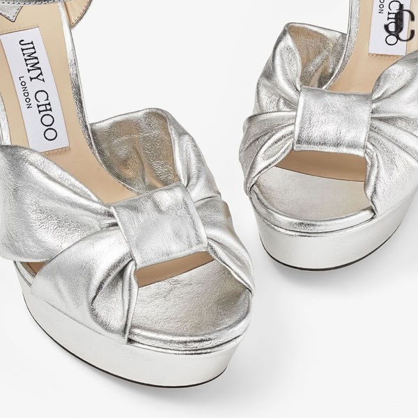 HELOISE 120 Plata Metalizado Cuero Nappa Sandalias de Plataforma
