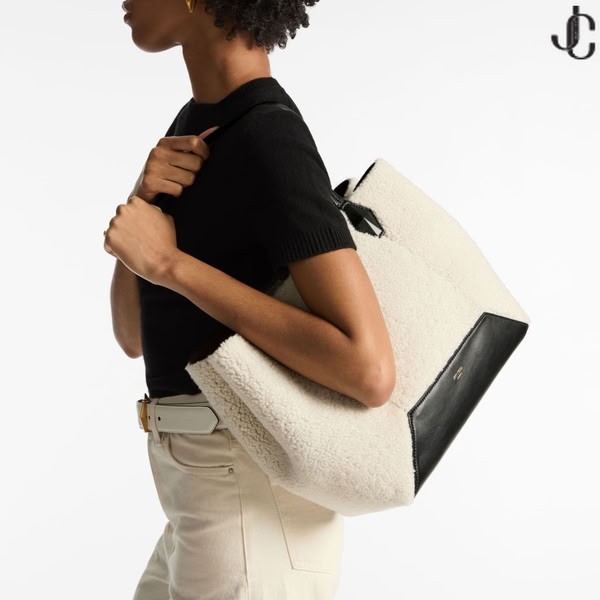 Diamond tote on valmistettu pehmeästä shearling. Paneelit huolellisesti ommeltu yhdessä luoda sen erottuva muoto, joka tarjoaa tilava sisustus päivän olennaiseen.
