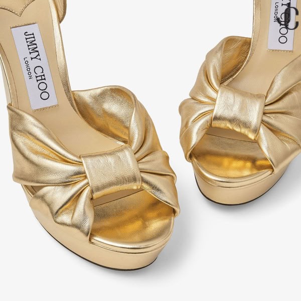 HELOISE 120 Kulta Metallinen Nappa Nahka Platform Sandaalit Kesän Kokoelma