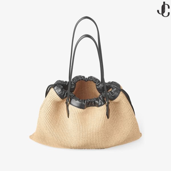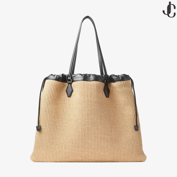 Kiristysnauha Tote L Luonnollinen Pehmeä Raffia Tote Sileä Vasikka Nahka Jimmy Choo Logo