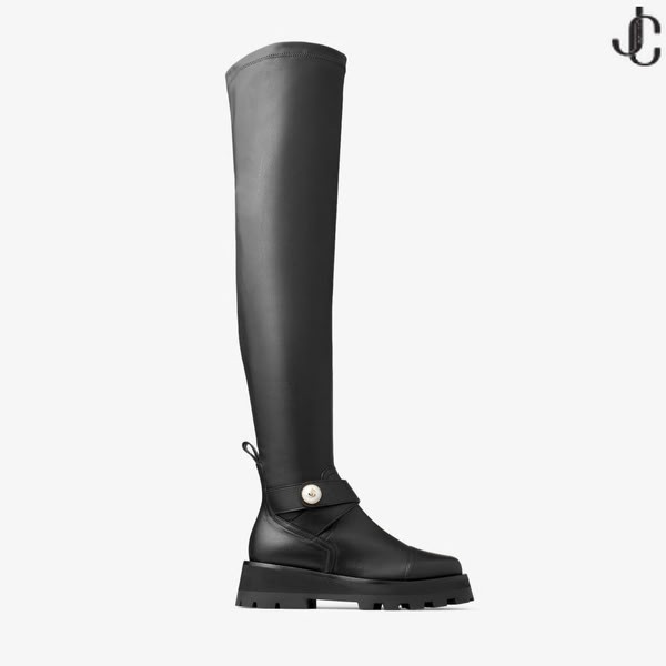 Meena OTK Tasainen Musta Nahka Over-The-Polven Saappaat