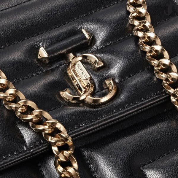 Musta Nappa Nappa Nahka Laukku Valo Kultaa JC-Tunnus AVENUEQUAD Syksy 2022 kokoelma