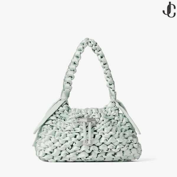 Cinch laukku on määritelty vaivatonta siluetti suojattu kiristysnauha sulkemista ja allekirjoitus timantti lukko. Juhlii Jimmy Choo on luontainen taiteellisuus, tällä kaudella se on toteutettu pehmustettu satiini, handwoven master käsityöläisten Italiassa.