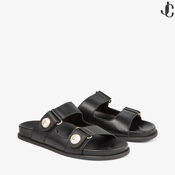 - FAYENCE SANDALE Sandales Plates en Cuir Noir avec Perle Embellissement de la Collection Été