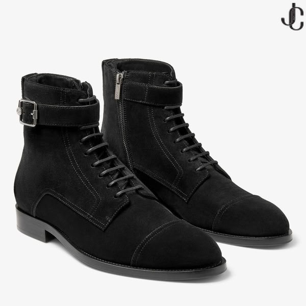 - Finnion Lace Up Boot Velours Noir Suede Boot