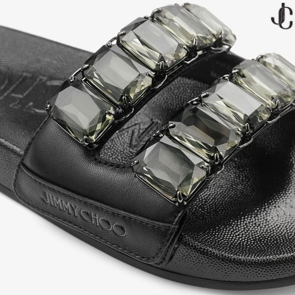 - Fitz/Cristal Noir En Cuir Nappa De Cristal De Diapositives