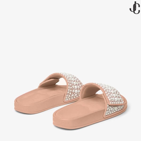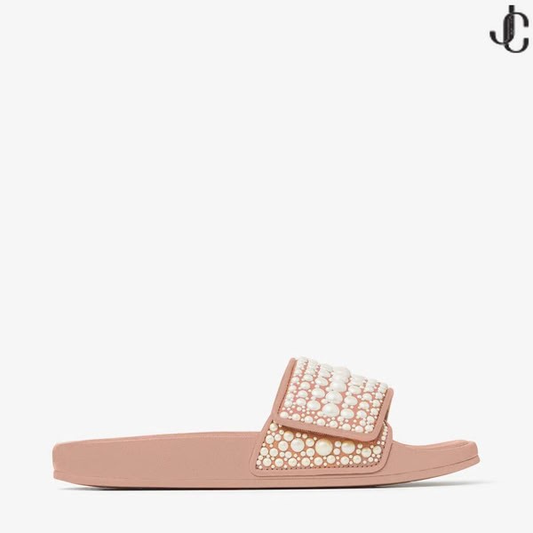 - FITZ/F Ballet Rose en Toile et Cuir Diapositives avec Perle Embellissement d'Hiver de 2022 collection
