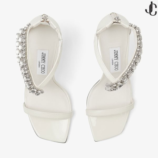 - Verity Sandale 100 Latte En Cuir Verni Sandales De Cristal