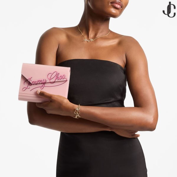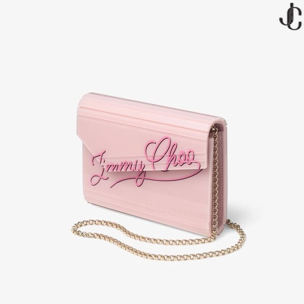 dhlúth mála clutch, Candy cuireann le breathnú nua-aimseartha le gné de spraoi. Deartha le chic neamhshiméadrach flap agus iomaireach uv panelling, gnéithe sé strap ghualainn slabhra agus é comhlánaithe ag síniú Jimmy Choo script.