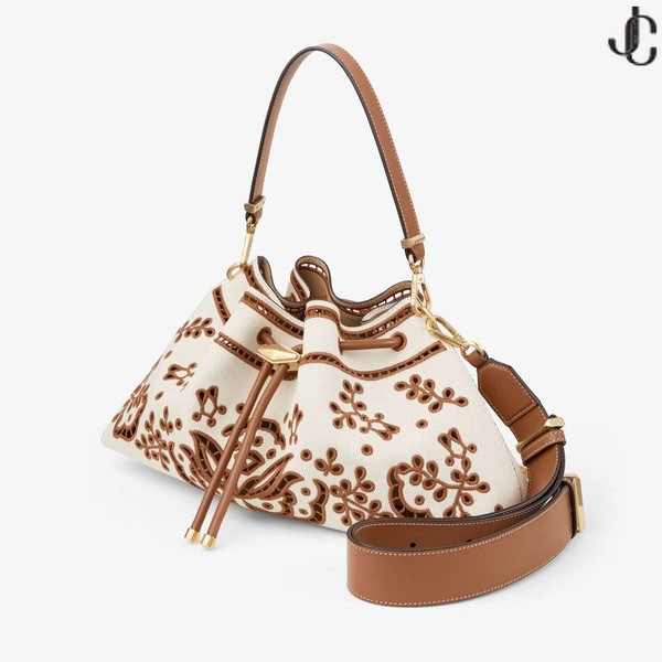 Spreagtha ag gcodarsnacht – an Cinch mála is é atá sainmhínithe ag an effortless scáthchruth urraithe le dúnadh drawstring agus síniú diamond clasp. Seo séasúr tá sé réadaithe le intricate Sangallo bróidnéireacht - ina ghné a shainmhíniú ar an Tsamhraidh 2025 bailiúchán - a imríonn amach i gcodarsnacht chanbhás agus leathair variant.