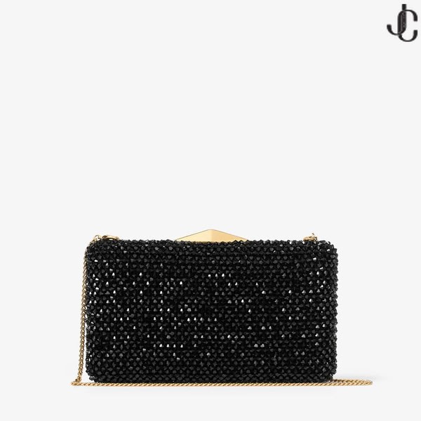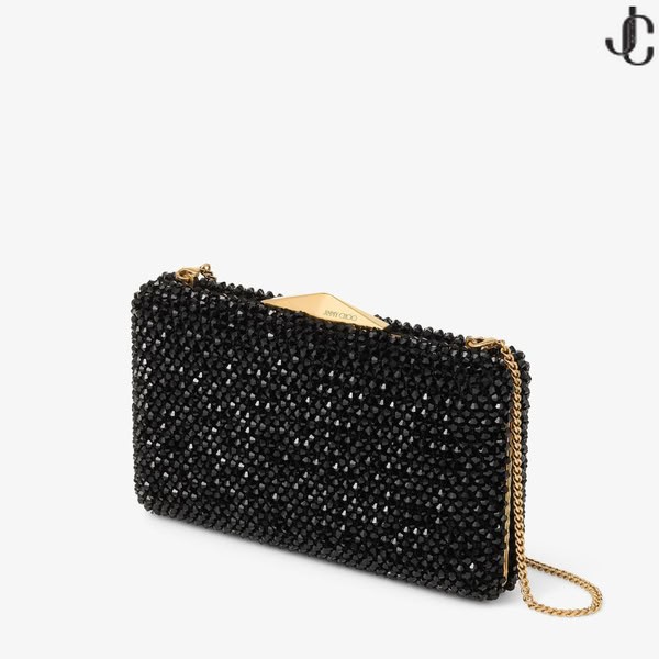 Clemmie Dubh Satin Criostail Bróidnithe Clutch Mála