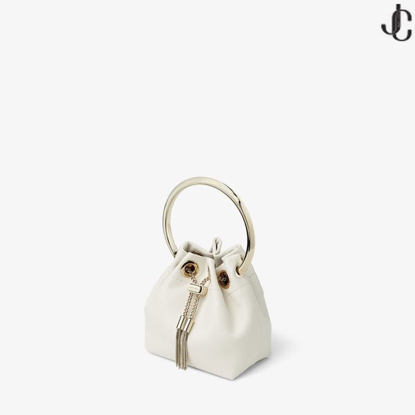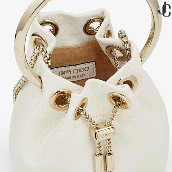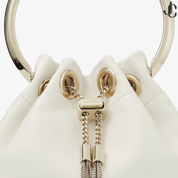 Our iconic BON BON bag is reimagined in miniature. Italian-crafted in latte smooth nappa, the perfectly petite MICRO BON BON features a light gold chain drawstring fastening and a light gold metal bracelet top handle. Prepare for mini proportions and maximum impact.