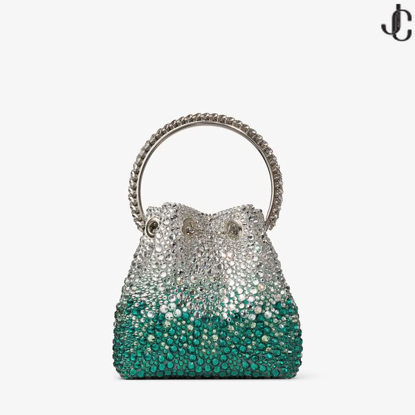 - Satin torbu BON BON od изумруда i srebra s kristalima